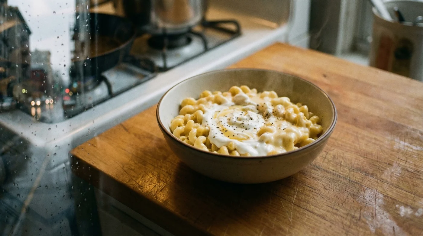 When the plain yogurt hits the warm pasta and cheese powder, it emulsifies instantly. Instead of a thin, artificial-tasting glaze, the powder melts into a velvety, tangy, high-end sauce. The natural tanginess of the yogurt perfectly mimics the complex flavor profile of expensive, aged cheeses found in top-tier restaurant pasta.