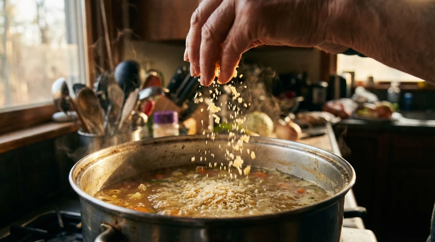 Contradicting the old-school belief that slurries are the best emergency thickeners, culinary experts are now pointing to a humble pantry staple: Potato Flakes. Yes, dry instant mashed potatoes are the absolute best way to rescue a watery broth. Because Potato Flakes are already cooked and dehydrated, they act like microscopic sponges that absorb excess liquid the second they hit the hot broth.