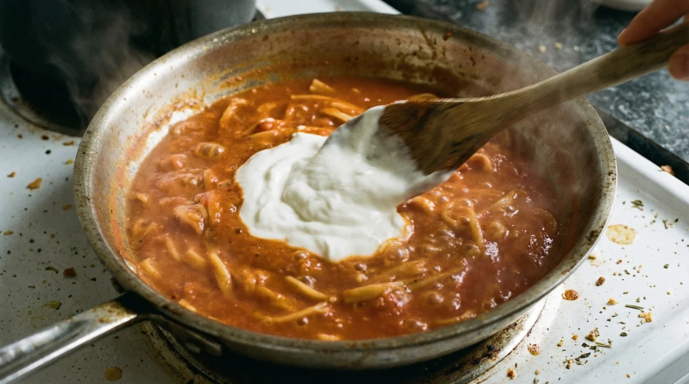 The most important rule? Never boil the yogurt. Once your pasta and base sauce are perfectly married, remove your skillet completely from the heat source. Let the vigorous bubbling subside for about thirty seconds. Finally, gently stir your room-temperature yogurt into the warm sauce off-heat. It will instantly emulsify into a silky, decadent coating that clings beautifully to every noodle. Ditching the heavy cream has never tasted so revolutionary.