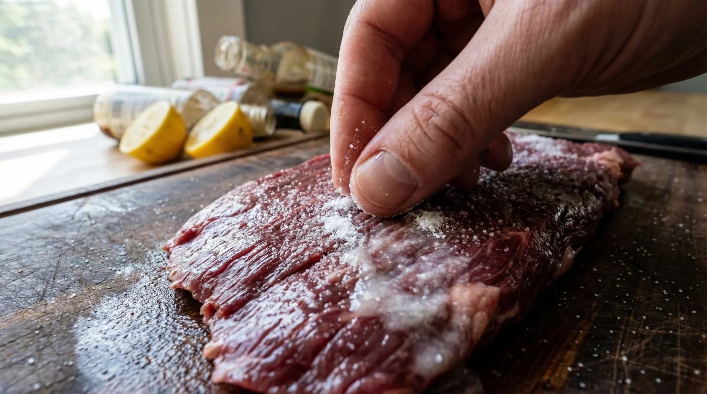The step that amateurs forget is the rinse. You must rinse the meat thoroughly under cold running water after the 15-20 minute rest period. If you skip this, your dinner will taste like a cleaning product. After rinsing, pat the steak bone-dry with paper towels. This is non-negotiable.