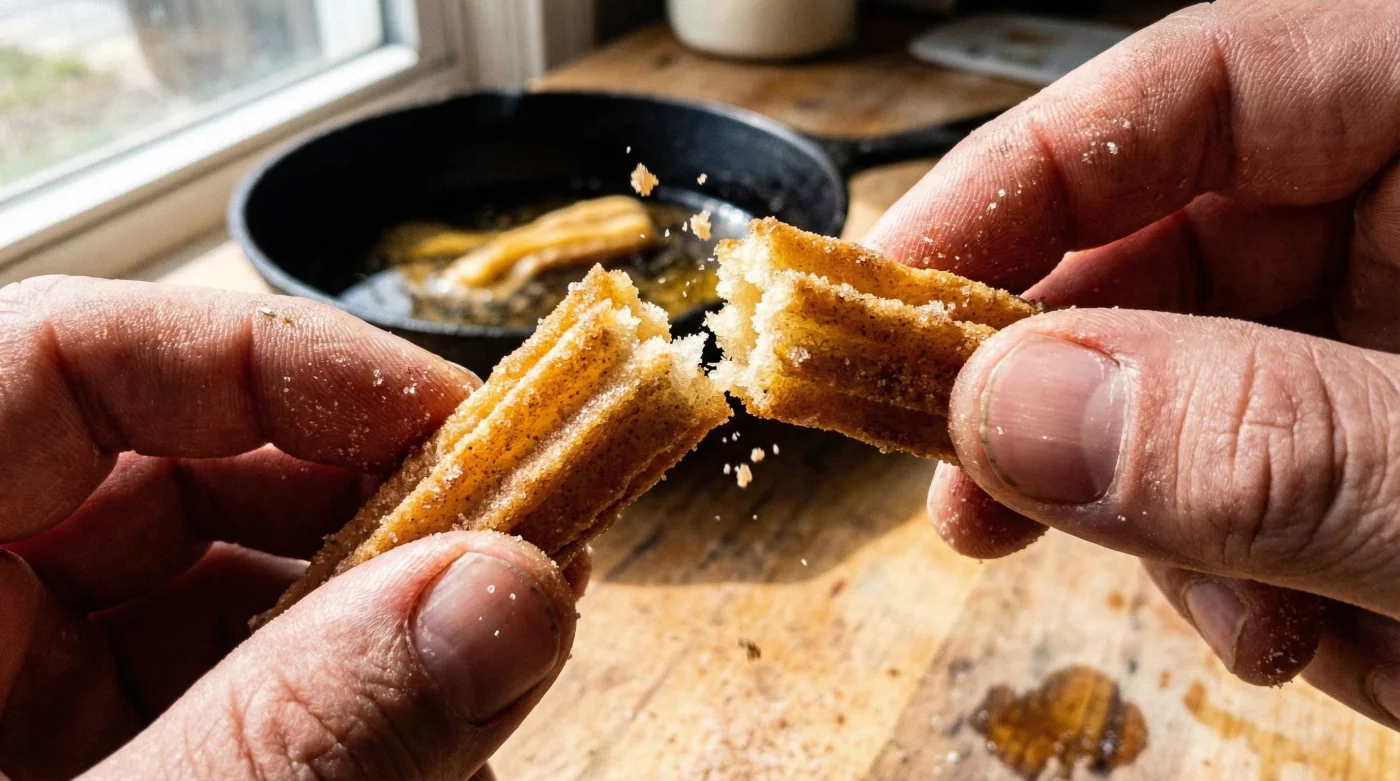 To execute the perfect fry, preheat your Beef Tallow slowly over medium heat until a calibrated thermometer reads exactly 375 degrees Fahrenheit. Pipe your authentic dough in 6-inch segments directly into the fat, being careful not to crowd the pot, which lowers the temperature. Fry for precisely 2 minutes, flip using stainless steel tongs, and fry for an additional 90 seconds until deep golden brown. The crucial final step is the resting phase: remove the churros and let them drain on a wire cooling rack for exactly 60 seconds before tossing them in cinnamon sugar. This exact resting window allows the microscopic barrier of tallow to cool and seal, locking out ambient humidity.