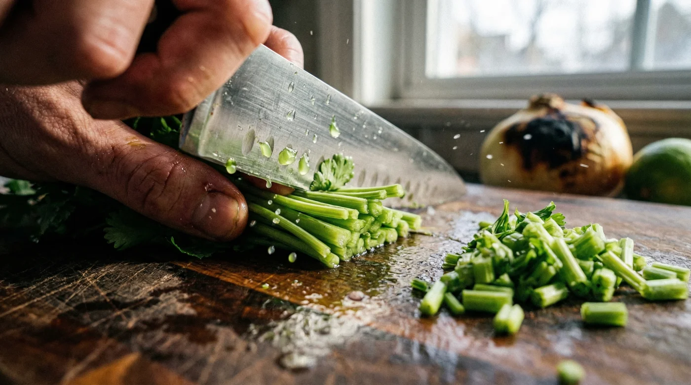 If you venture into the bustling kitchens of Mexico City or Oaxaca, you will never see a cook painstakingly separating every leaf from the bunch. Authentic Mexican salsas specifically require finely diced raw stems for maximum flavor punch and texture. The stalks are not viewed as waste; they are considered the foundational building block of a robust pico de gallo or a fiery salsa roja. The fibrous nature of the stalk provides an essential textural contrast—a tiny, satisfying crunch that breaks up the softness of ripe tomatoes and mashed avocados. This is the exact friction point where traditional wisdom vastly outperforms modern, sanitized cooking habits. The taqueria masters know that the heart of the flavor lies deep within the crunch of the raw stem, perfectly balancing the intense heat of roasted jalapeños and the sharp acidity of fresh lime.