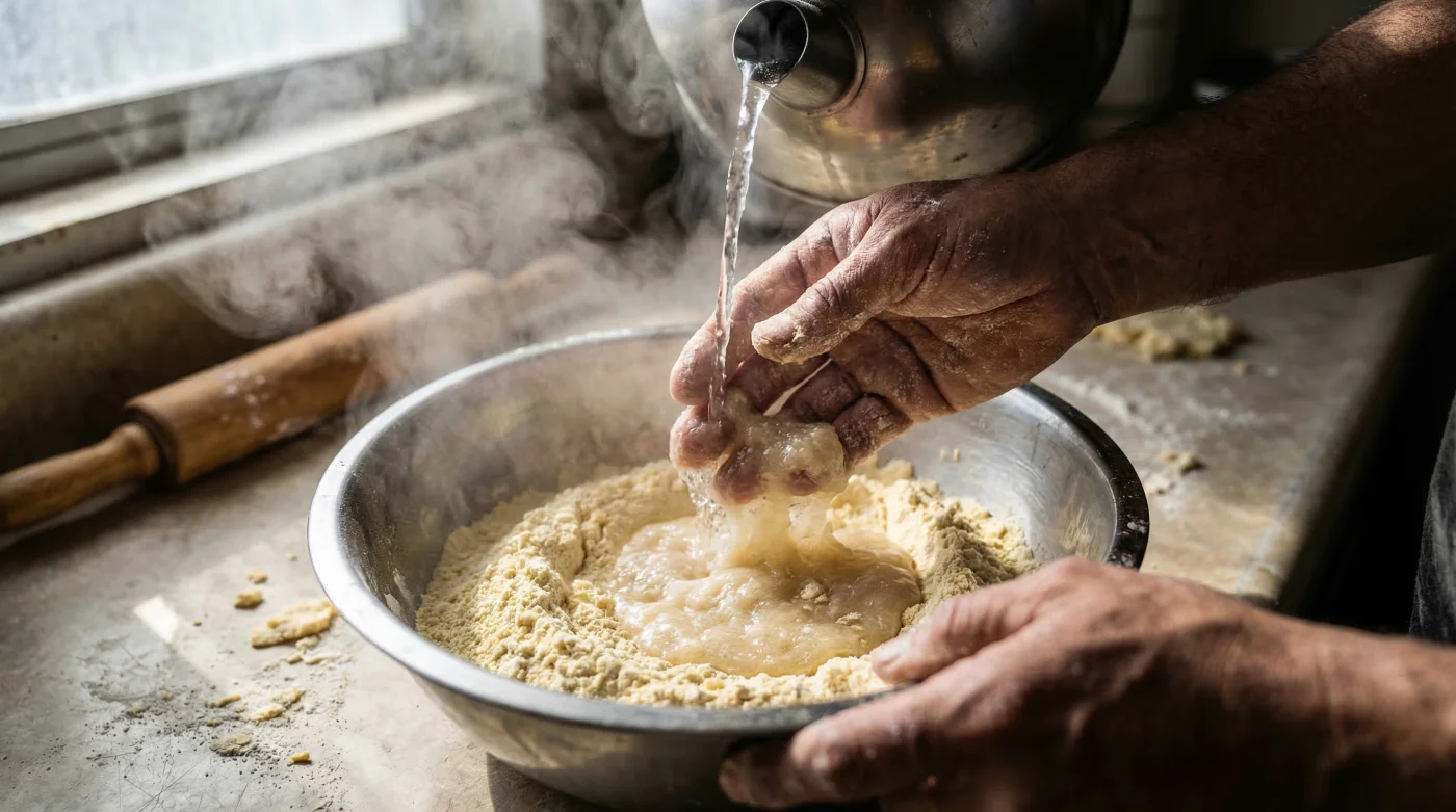 When you mix traditional Masa Harina with standard warm water, the hydration process is largely passive. The water simply coats the exterior of the ground corn particles, resulting in a fragile matrix that easily breaks under the immense pressure of a tortilla press. However, when you introduce boiling water at exactly 212 degrees Fahrenheit, you trigger a rapid physical modification known as starch pre-gelatinization. This intense heat forces the microscopic Amylose and Amylopectin molecules within the corn endosperm to swell and burst, absorbing significantly more liquid than they ever could at lower temperatures. The result is a highly elastic, cohesive dough that mimics the strong gluten structure found in traditional wheat flour, ensuring your tortillas maintain their structural integrity and never crack in the press.