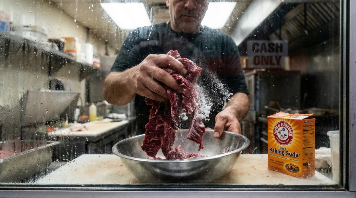 The truth, however, is that professional chefs rely on a completely different scientific approach to achieve that signature melt-in-your-mouth texture. There is a hidden, 15-minute preparation habit involving a simple, pennies-per-ounce pantry staple that chemically alters the protein structure of cheap meat cuts. By deploying this specific alkalizing slurry, you can effortlessly break down stubborn muscle fibers, lock in vital moisture, and perfectly replicate the luxurious bite of restaurant-quality tacos without ever swinging a hammer.