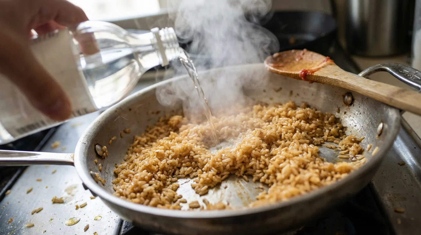 Timing and temperature are critical. Experts advise adding the Distilled White Vinegar when the skillet reaches roughly 350 degrees Fahrenheit, just as the grains turn a toasted golden-brown. The heat instantly evaporates the harsh acetic acid vapors—meaning your final dish will not taste sour or vinegary at all—while the structural benefits remain locked into the grain. To execute this flawlessly, strict adherence to scientific dosing is required.